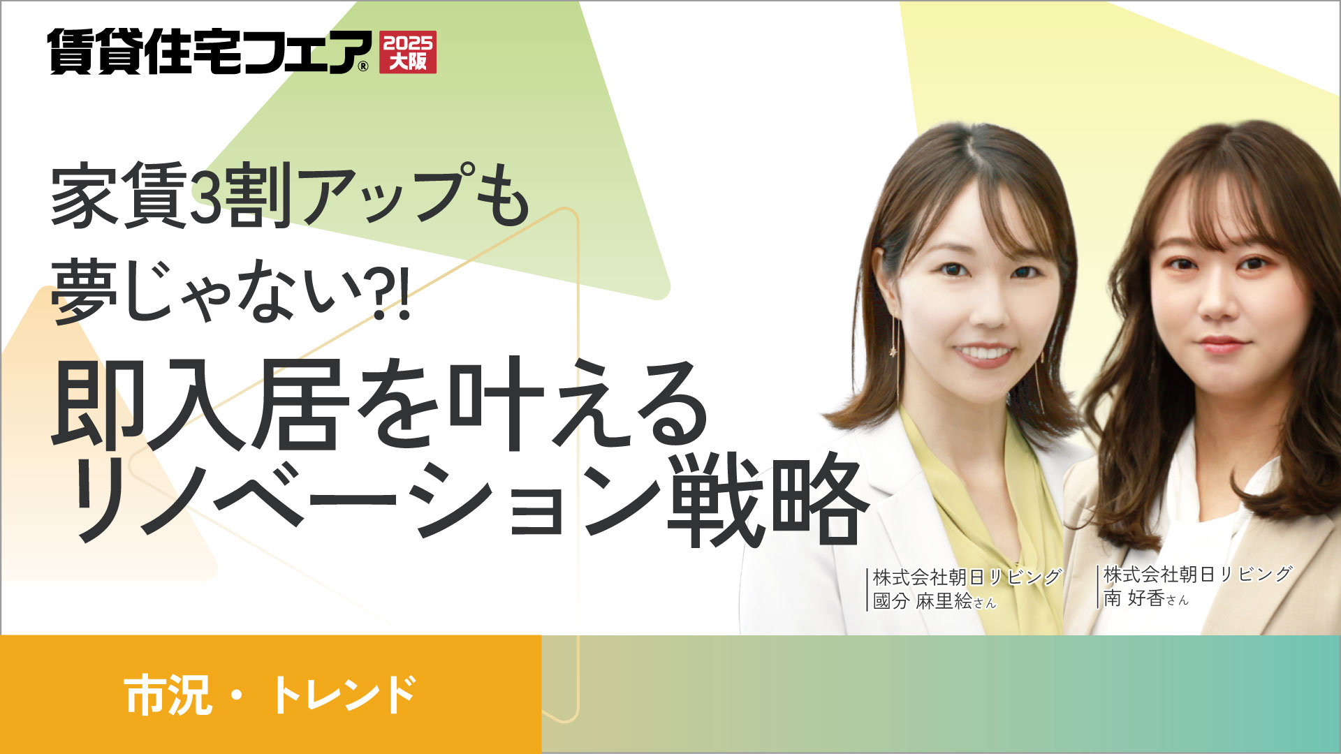 ※こちらは展示会の来場登録です。セミナーは出入り自由のため、席の予約は受けておりません。セミナーを聴講する場合は、来場登録の上、開始時刻10分前までに、「賃貸住宅フェア」会場内のセミナースペースにお越しください(席数に限り有)