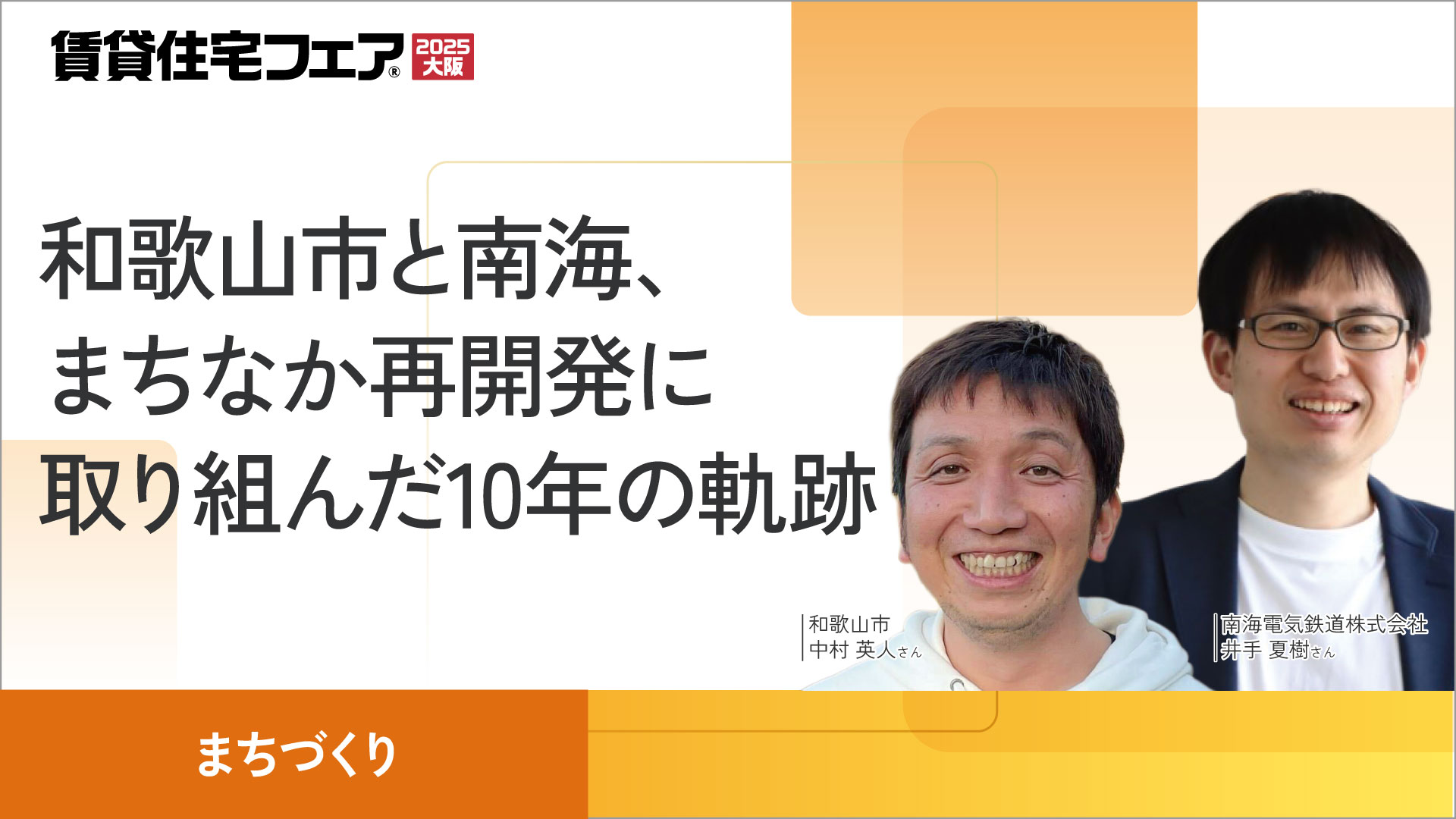 中心部の衰退が著しかった和歌山市で、南海電鉄・和歌山市駅に活気を取り戻すため、市と南海電鉄が協力した、まちづくり10年の軌跡を、それぞれの現場責任者が話す。駅舎の建て替えと、空き家リノベーションが和歌山市の旧市街地にもたらしたものとは。